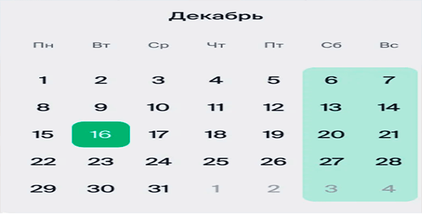 Общее число выходных в декабре