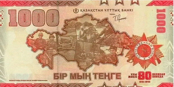 el24.kz В мае этого года в Казахстане в обращение поступили памятные банкноты, выпущенные в честь 80-летия Победы, в количестве 5 миллионов экземпляров.